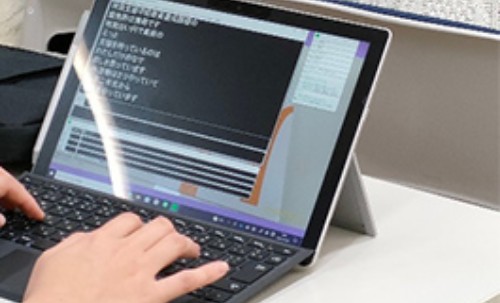 情報保障とは、利用学生さんが受けている講義に参加し、先生が話されている内容をパソコンを使って文字起こしすることです。