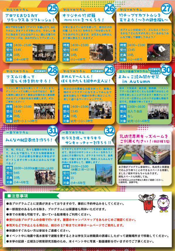| 日時 | 2025年11月22日(土)10:00~16:30 (集合・解散は参加するプログラムによって異なります) |
