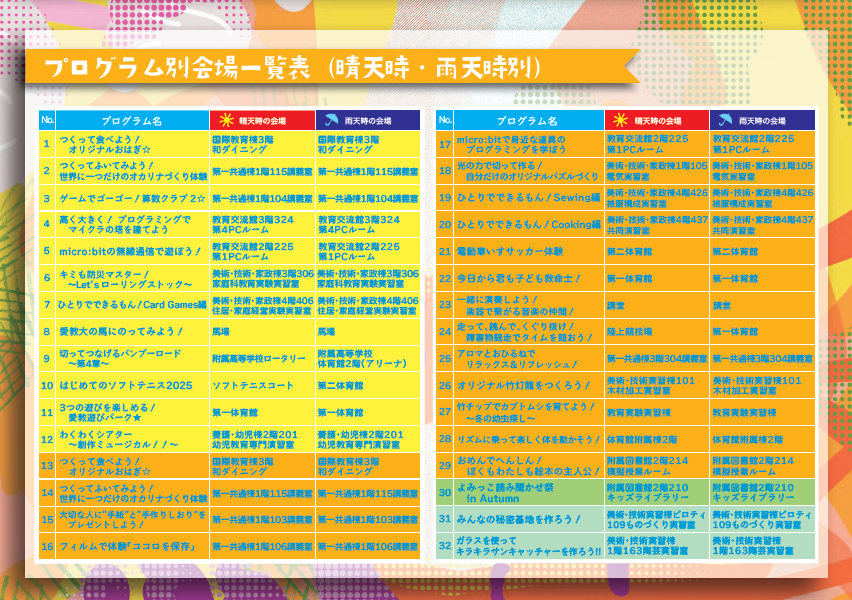 | 場所 | 愛知教育大学(集合・解散場所:各会場、総合案内:本部棟) |