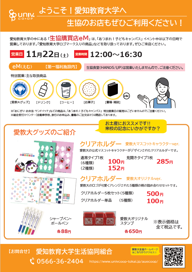 | お問い合わせ先 | 愛知教育大学 企画課未来共創推進室 未来共創推進係 TEL:0566-95-3601、3602 E-mail:mirai ※上記アドレスに@m.auecc.aichi-edu.ac.jpを補完してください。 |