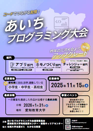 主催 | あいちプログラミング大会運営委員会 愛知教育大学地域連携センター 愛知教育大学教職キャリアセンター |