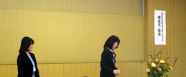 これを受けて仁井さんは「この2年間で学んできた勉強の成果を生かし,修士論文の研究を頑張っていきたい」,近藤さんは「合金の面白さが分かるようになった。今後子どもたちや地域の皆さんにも,その面白さを伝えていきたい」,夏目さんは「今回いろいろな研究をすることができた。今後も技術に関心をもって学んでいきたい」,松田さんは「今後は技術の教員として,この賞状に誇りをもってしっかりと活躍していきたい」と今後の目標が語られました。4人とも,来る就職をしっかりと見据えた目標を立てており,さらなる活躍に期待できる表彰式となりました。
