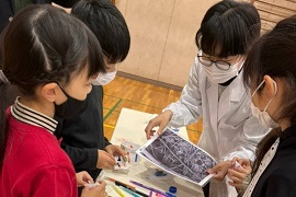 3D宇宙シアターは、3Dメガネを装着することで、惑星の形や宇宙の構造を立体的に視覚できる映像体験です。学生による解説のもと、地球を飛び立ち、太陽系・銀河系を巡り、最後は宇宙の果てを目指して旅をする構成になっています。子どもたちからは、「宇宙がとても広いことが分かった」、「本当に宇宙に行ってみたくなった」などの感想が聞かれ、宇宙を身近に感じられる取り組みとなりました。