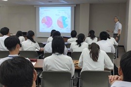2024年7月20日 県立高校教育コースとの高大連携の一環で豊橋南高等学校の生徒が来学し、理事が講話を実施しました。