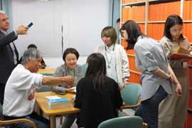 10月31日(木)、名古屋大学大学院教育発達科学研究科の学生と教員 合計34人が来学し、本学名誉教授である 故 霜田一敏先生より本学に寄贈された授業記録が授業の教材として活用されました。
