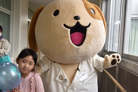 昼食後は特別支援教育棟に戻り、児童たちを待ちかまえていた愛教ちゃんとエディに大喜びしながら記念撮影を行いました。