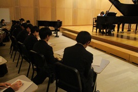中道さんからは、「このような結果をいただけたのは、いつもお世話になっているピアノの先生、金原先生や國府先生をはじめとする大学の先生方、そしていつも支えてくれる家族や友達のおかげだと思っています」「今回はピアノで表彰していただきましたが、大学では声楽や吹奏楽など幅広く音楽について学び、音楽の魅力を伝えていけるような教師になりたいと思っています」と感謝の言葉と今後の抱負が述べられました。